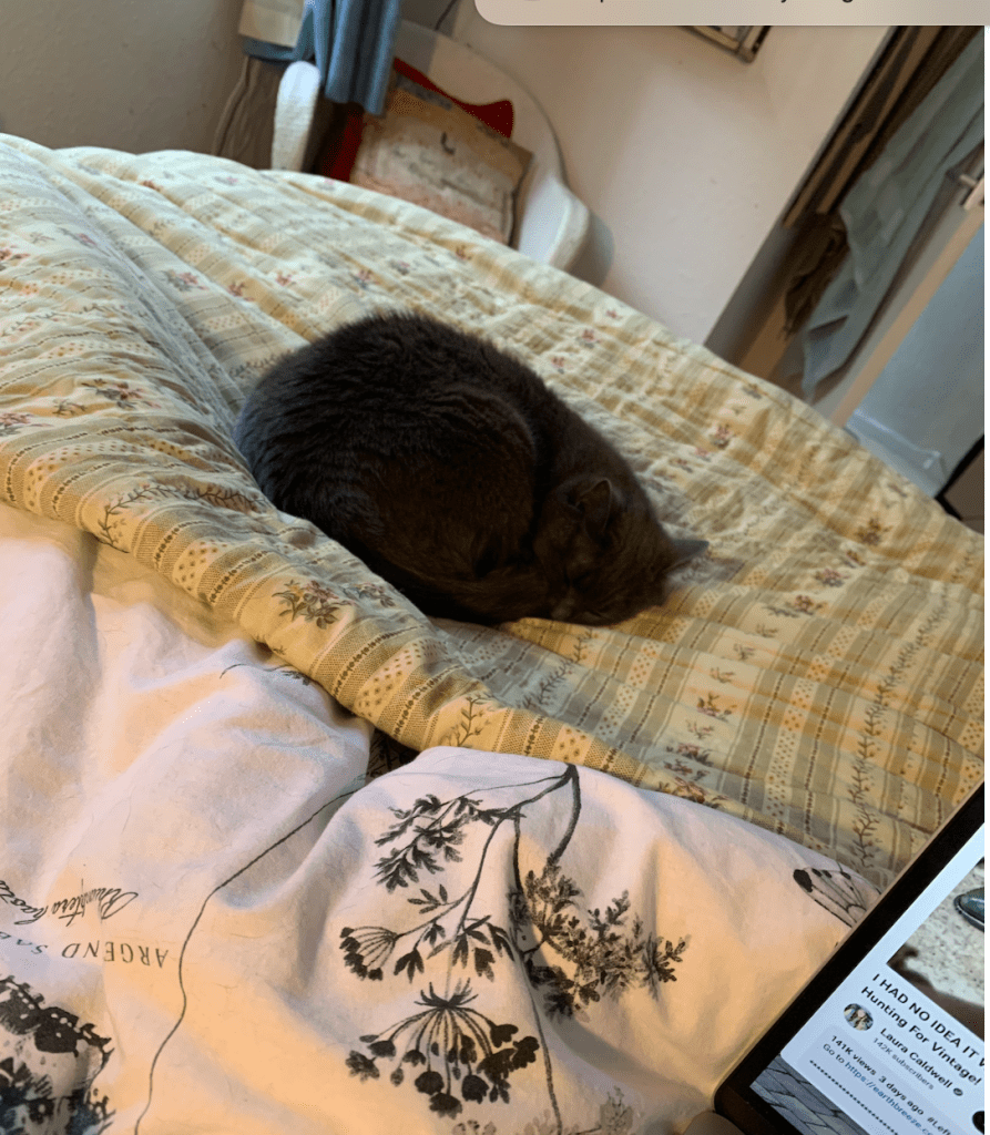 I’m currently sitting in bed in my spare room as there is a good view of the garden, and I’m tired because I cleaned the bathroom after my morning shower (just a quick wipe down, don’t tell my husband!) I’m resting, admiring the snow and being kept company by my cat