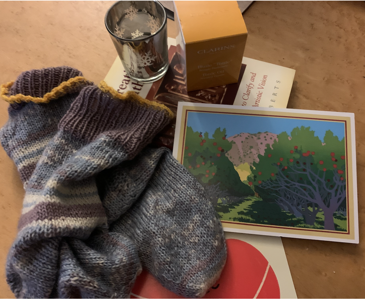 I always thought that I was an empathetic person, but now I hope I understand more deeply how frustrating ill health can be. How much I need to prepare for even a short journey in a way that I never did before. I also came to realise how much the little things come to mean, the messages on Facebook, the loan of a favourite book or the card or scented candle or the gorgeous socks knitted by a very kind friend. I have thanked people individually, but I’ll say again how much these things mean to me. Thank you.