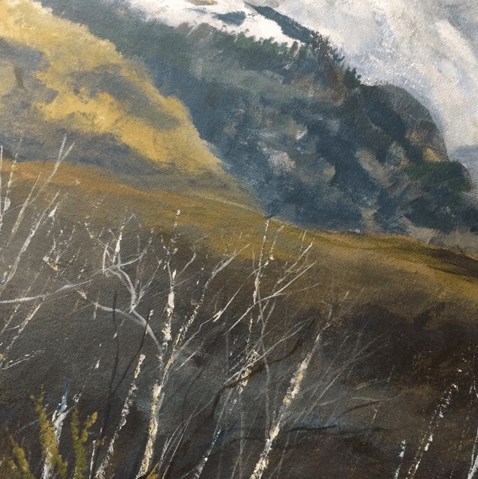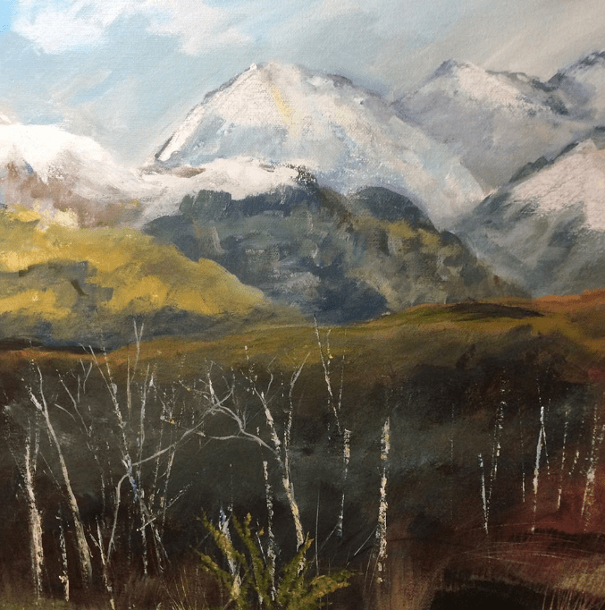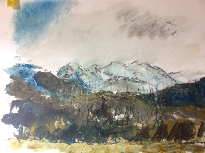 Firstly it was based on a recent sketch I did of the Five Sisters of Kintail, a stunningly beautiful range of mountains in the Western Highlands of Scotland.