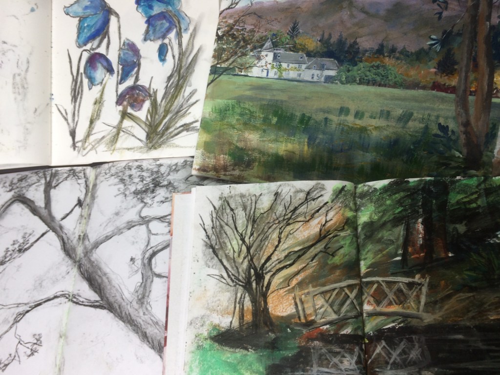 Both Aileen and I sketch and paint outside a lot so we thought it would great to be able to share our experience of working en plein air, so we’ve arranged to run four workshops at the absolutely stunning Attadale Gardens and two workshops at the gorgeous Loch Torridon, based at the Loch Torridon Centre, there are three stunning mountains dominating the landscape: Beinn Alligin, Liathach and Beinn Eighe. For more information about this project or to book a place click here: Workshops