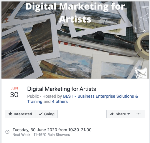 My latest collaboration is with the innovative and rather wonderful West Highland College to deliver two online courses, something I’m really excited about. The first course starts on Tuesday 30th June (click on the link on the picture below to go directly to their event page on FB) or click BEST – Business Enterprise Solutions and Training. to book on their website: The college have been really helpful and supportive and I’ve worked with them to keep the cost of the courses really low to make them as accessible as possible. I’m really keen to help and support other artists in any way I can and West Highland College has a lot of experience in delivering a great selection of online courses so this seemed like a really great way to do that.