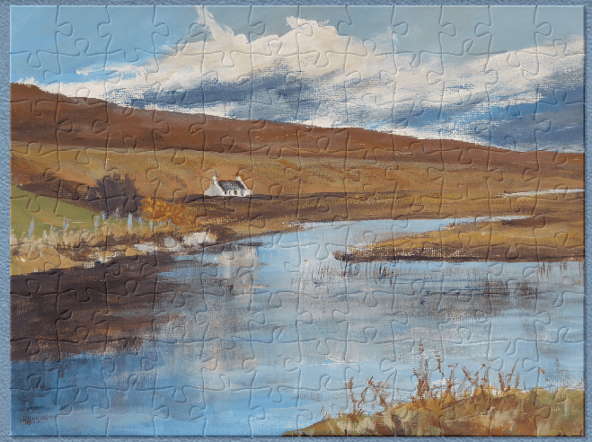 The first jigsaw is 100 pieces and the second is 150, anything larger than that the pieces would be too small I think. My paintings do make good jigsaws though, even if I do say it myself. Please feel free to have a go.