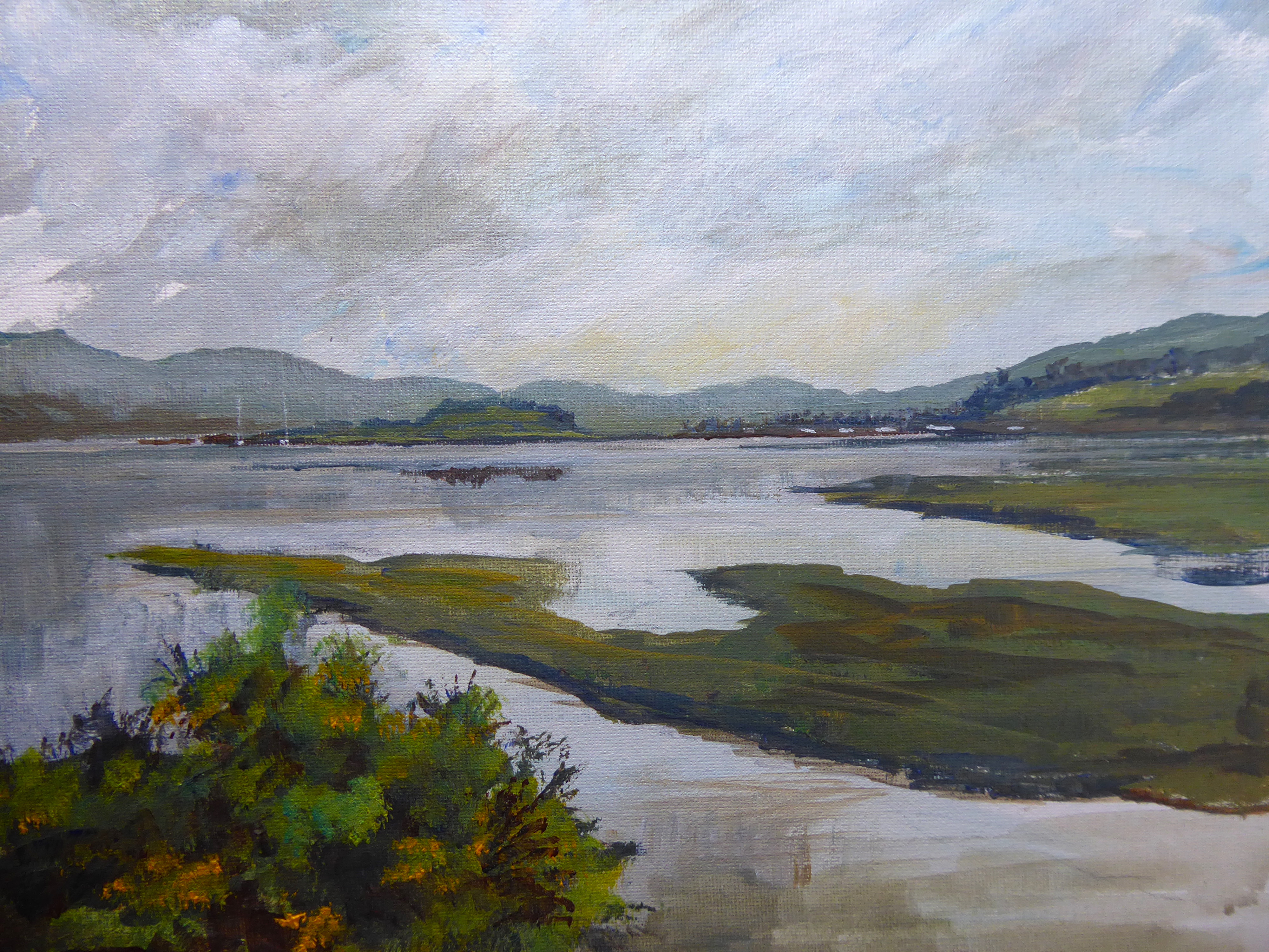 This is the view of Slumbay Island in Lochcarron at High Tide, painted “en plein air by Cindie Reiter it is 30 x 20 cms (12 x 10 inches and comes in a cream mount in a cello bag. Shipping – free