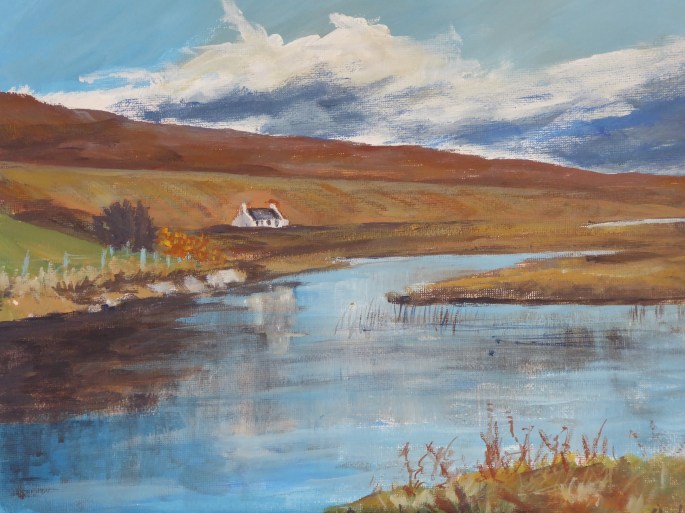 This is the view of Lochend Cottage in Applecross, painted “en plein air by Cindie Reiter it is 30 x 20 cms (12 x 10 inches and comes in a cream mount in a cello bag.